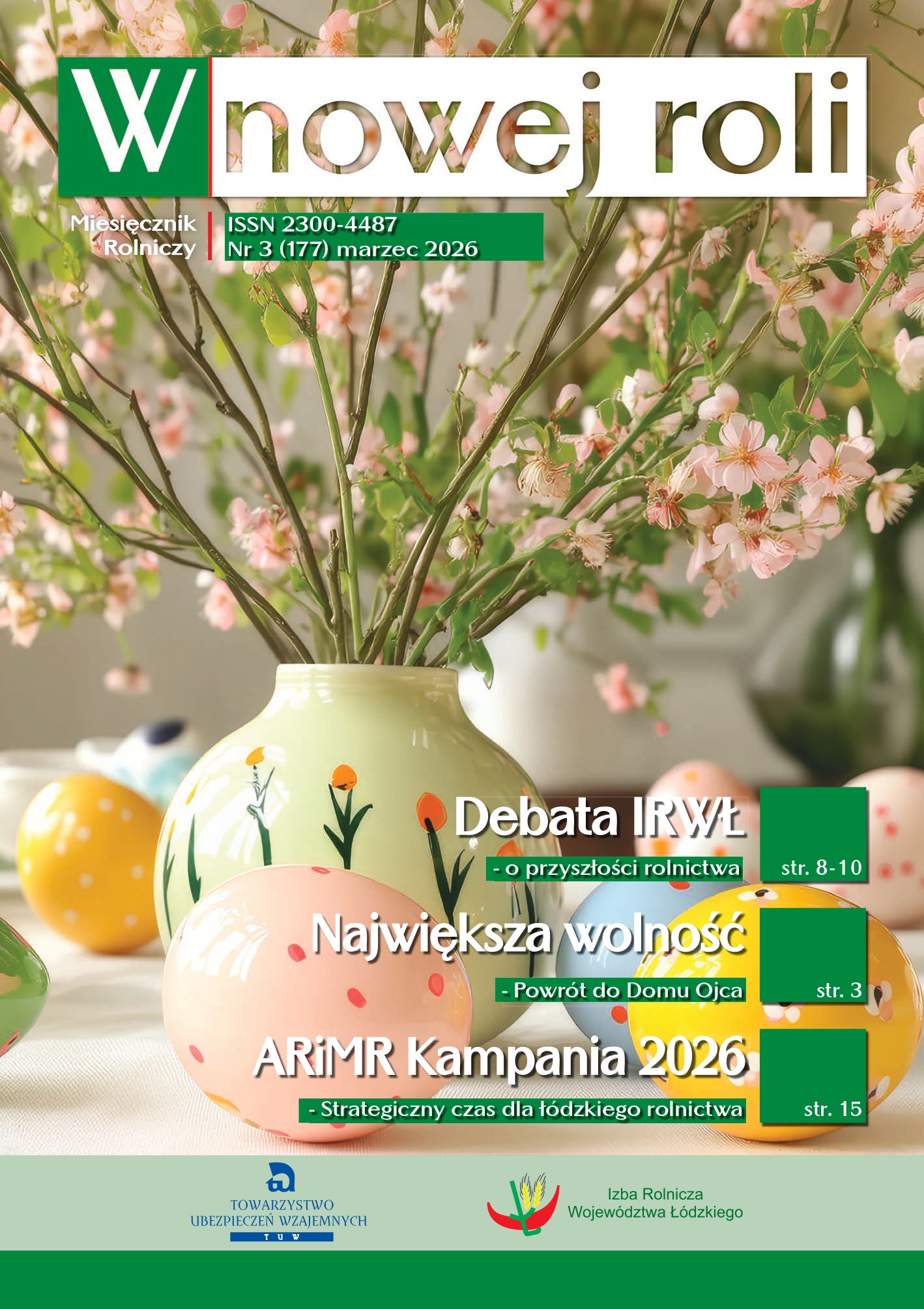 Zapraszamy Państwa do lektury nowego wydania miesięcznika Izby Rolniczej Województwa Łódzkiego „W nowej roli”. W tym numerze szczególnie polecamy artykuł poświęcony Targom FERMA 2026 oraz debacie Izby Rolniczej Województwa Łódzkiego. Wydarzenia te po raz kolejny stały się przestrzenią wymiany doświadczeń, dyskusji o wyzwaniach oraz poszukiwania wspólnych rozwiązań. W obliczu dynamicznych zmian rynkowych, technologicznych i klimatycznych takie spotkania nabierają szczególnego znaczenia – budują sieci współpracy, integrują środowisko i wzmacniają głos rolników w debacie o przyszłości polskiego rolnictwa.