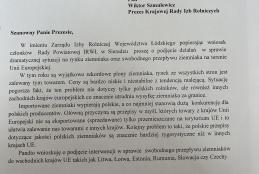 W imieniu Zarządu Izby Rolniczej Województwa Łódzkiego, popierając wniosek członków Rady Powiatowej IRWŁ Powiatu Sieradzkiego, Prezes IRWŁ Bronisław Węglewski skierował pismo do Prezesa Krajowej Rady Izb Rolniczych Wiktor Szmulewicz z prośbą o podjęcie działań  w sprawie dramatycznej sytuacji na rynku ziemniaka oraz swobodnego przepływu ziemniaka na terenie Unii Europejskiej. W tym roku są wyjątkowo rekordowe plony ziemniaka, rynek ze wszystkich stron jest zalewany tym towarem. Ceny są bardzo niskie i niestabilne z tendencją malejącą.