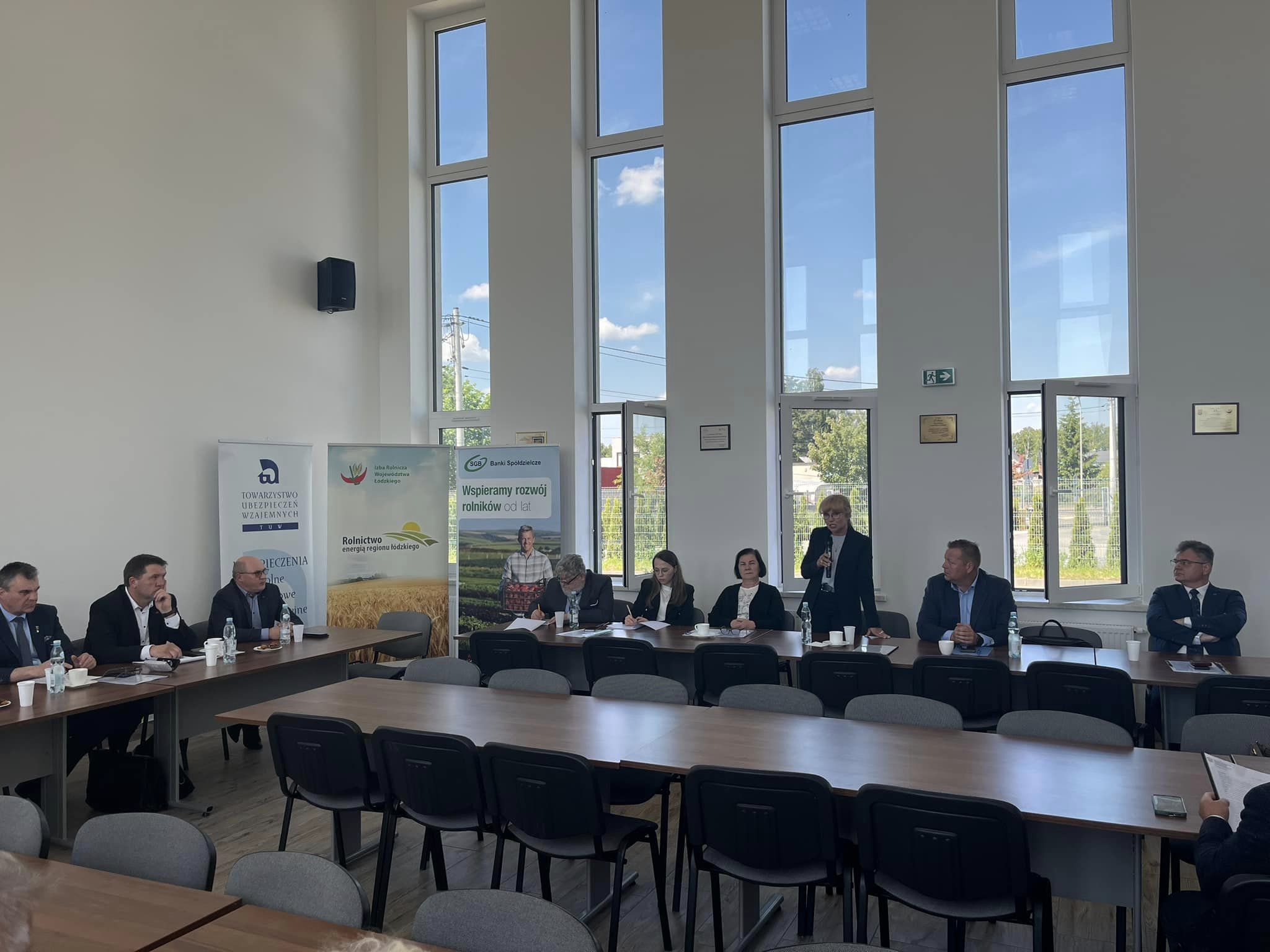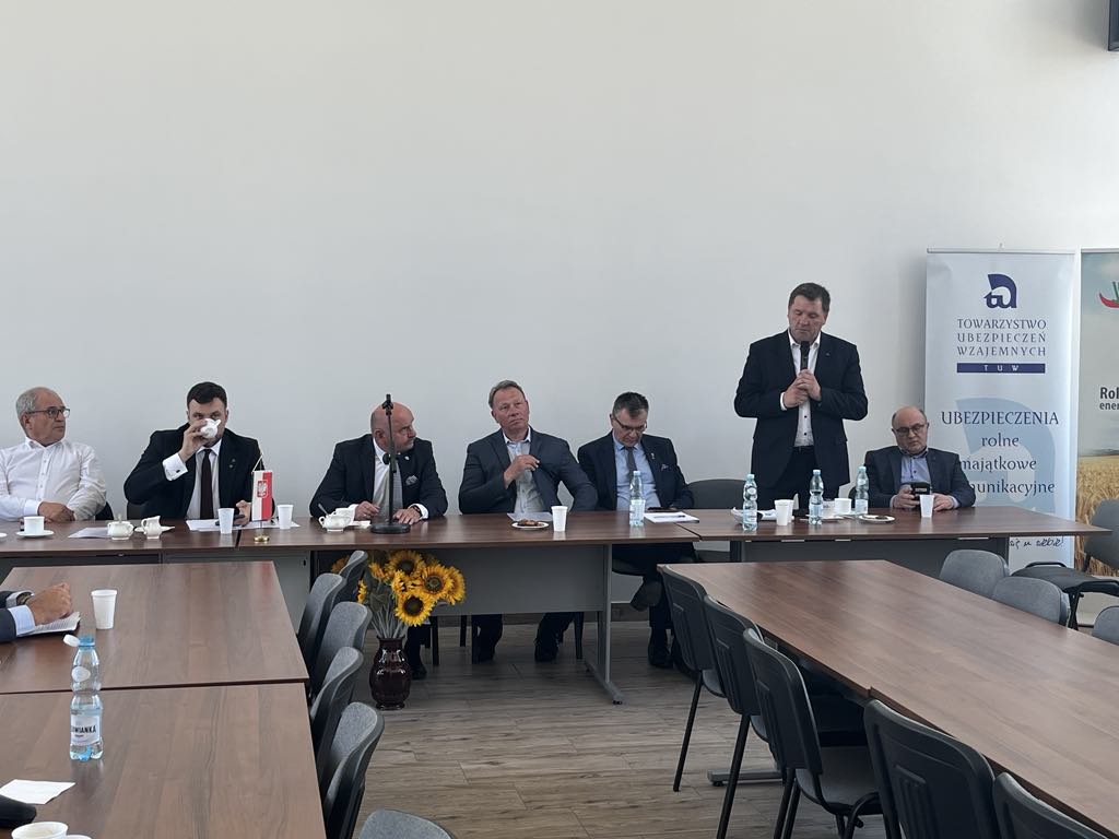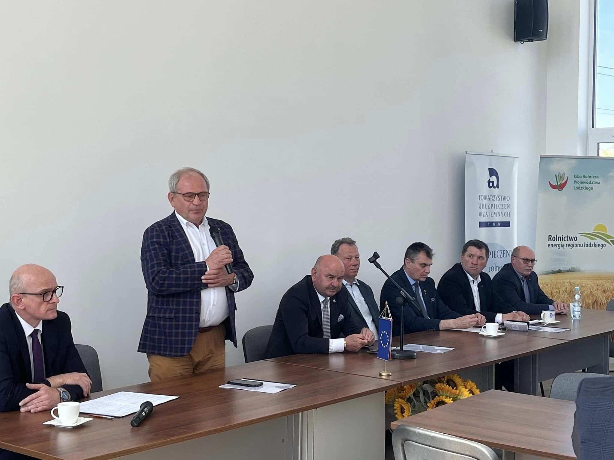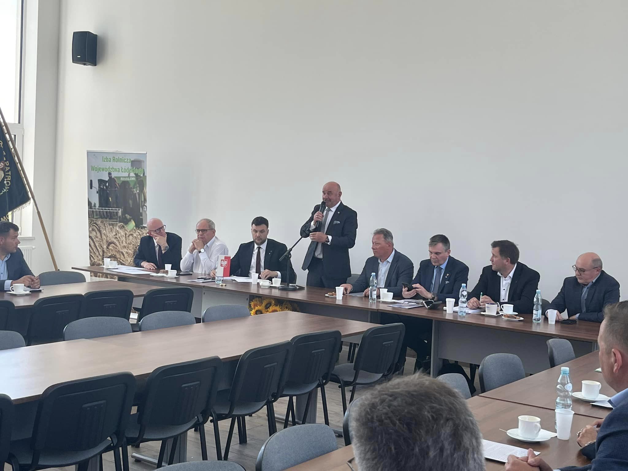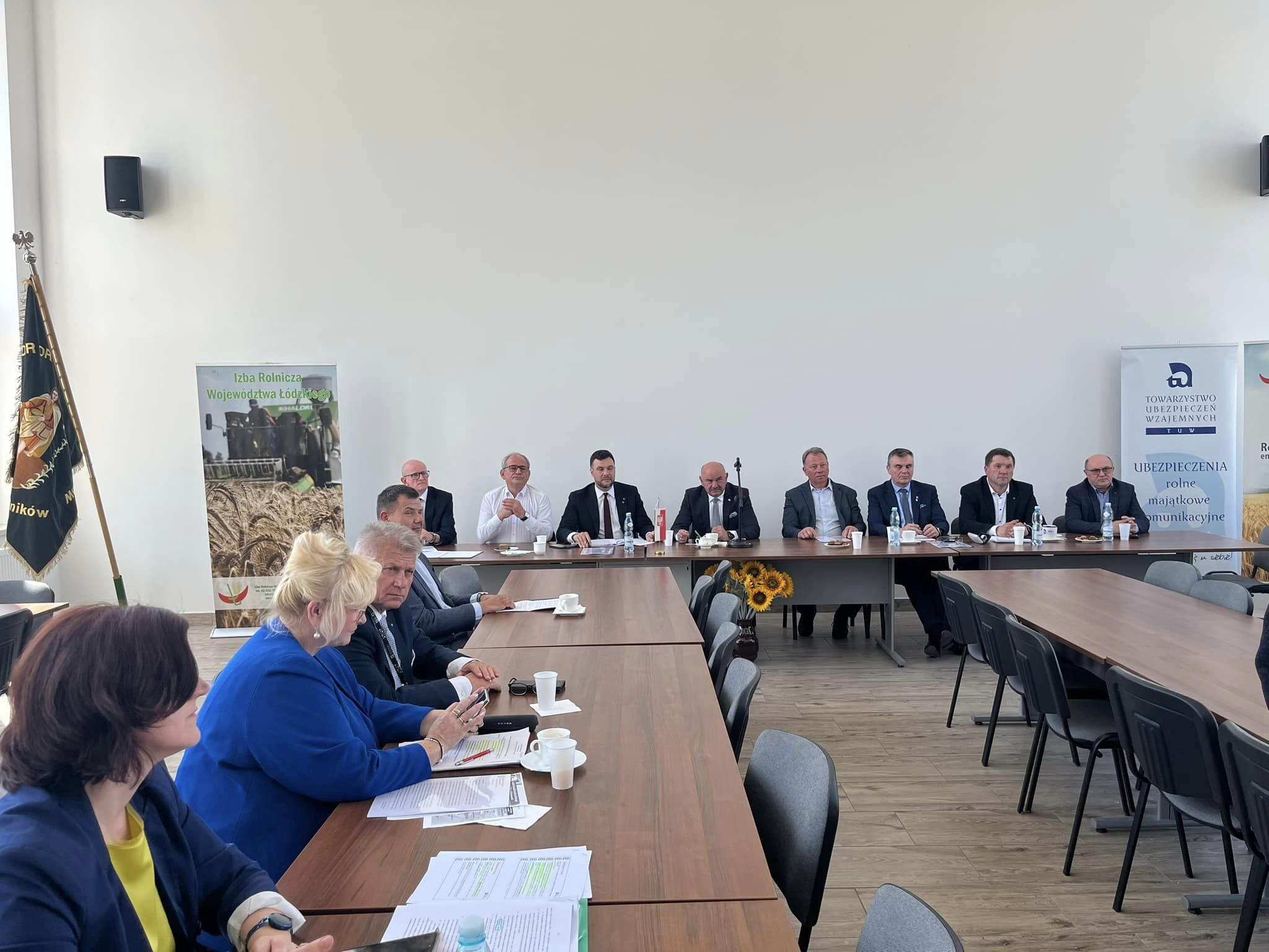 Z inicjatywy Prezesa Izby Rolniczej Województwa Łódzkiego Bronisława Węglewskiego w dniu 21 maja 2024 r. Pani Wojewoda Dorota Ryl zorganizowała spotkanie w siedzibie IRWŁ w Łodzi, na którym poruszone zostały bieżące sprawy dotyczące funkcjonowania sektora rolnego. Panią Wojewodę reprezentował Marek Mazur – I Wicewojewoda Łódzki. Przedstawicielem Ministra Rolnictwa i Rozwoju Wsi był Adam Nowak Podsekretarz Stanu w Ministerstwie Rolnictwa i Rozwoju Wsi. Spotkanie odbyło się w trakcie Zarządu IRWŁ, w którym uczestniczyli: Jacek Ossowicz Wiceprezes IRWŁ. Grzegorz Antoniewski Członek Zarządu, Marian Kacprzak Członek Zarządu, Jan Kołodziejczyk Członek Zarządu. Wśród zaproszoych gości byli rówież: Andrzej Stępień, Dyrektor Oddziału Regionalnego Agencji Restrukturyzacji i Modernizacji Rolnictwa w Łodzi, Piotr Było Dyrektor Wojewódzkiego Inspektoratu Jakości Handlowej Artykułów Rolno Spożywczych w Łodzi, Przemysław Jaszczak Dyrektor Krajowego Ośrodka Wsparcia Rolnictwa, Oddział Terenowy w Łodzi; Katarzyna Kacprzak-Arhayem kierownik Działu Nadzoru Fitosanitarnego WIORIN Łódź; Elżbieta Nawrocka, dyrektor Oddziału Regionalnego Kasy Rolniczego Ubezpieczenia Społecznego w Łodzi; Ewa Lech, Zastępca Łódzkiego Wojewódzkiego Lekarza Weterynarii; Przemysław Majchrowski, dyrektor Stacji Doświadczalnej Oceny Odmian w Sulejowie; Andrzej Karniszewski Dyrektor Łódzkiego Ośrodka Doradztwa Rolniczego z siedzibą w Bratoszewicach; Janusz Terka, przewodniczący Solidarności Rolników Indywidualnych Powiatu Piotrkowskiego oraz Przewodniczący Rady Powiatowej IRWŁ Powiatu Piotrkowskiego. Podczas spotkania prowadzonego przez Andrzeja Janika, dyrektora Wydziału Rolnictwa i Transportu w Łódzkim Urzędzie Wojewódzkim, poruszono między innymi takie tematy jak: kwestie dopłat do zbóż, ubezpieczeń trzody chlewnej, warzyw i owoców (przymrozków wiosennych i suszy), problemy ze zbytem zbóż w związku z napływem ukraińskiego zboża na rynek polski, odstrzałem sanitarnym dzików, ASF, dofinansowania do fotowoltaiki dla rolników. Zaproszeni przedstawiciele poszczególnych jednostek przybliżyli realizowane przez siebie zadania, a także omówili obecną sytuację w rolnictwie na szczeblu województwa oraz kraju. Wiceminister Rolnictwa Adam Nowak, podkreślił wagę organizacji takich spotkań, celem zbudowania wzajemnej współpracy. Przedstawił on również zmiany w zakresie warunkowości i ekoschematów. W czasie dyskusji padało wiele pytań oraz poruszono problemy na które wspólnie szukano rozwiązań. Wskazano na dalszą potrzebę organizowania właśnie takich spotkań. Zapowiedziano kolejne spotkanie, ktore odbedzie się 10 lipca 2024 roku.