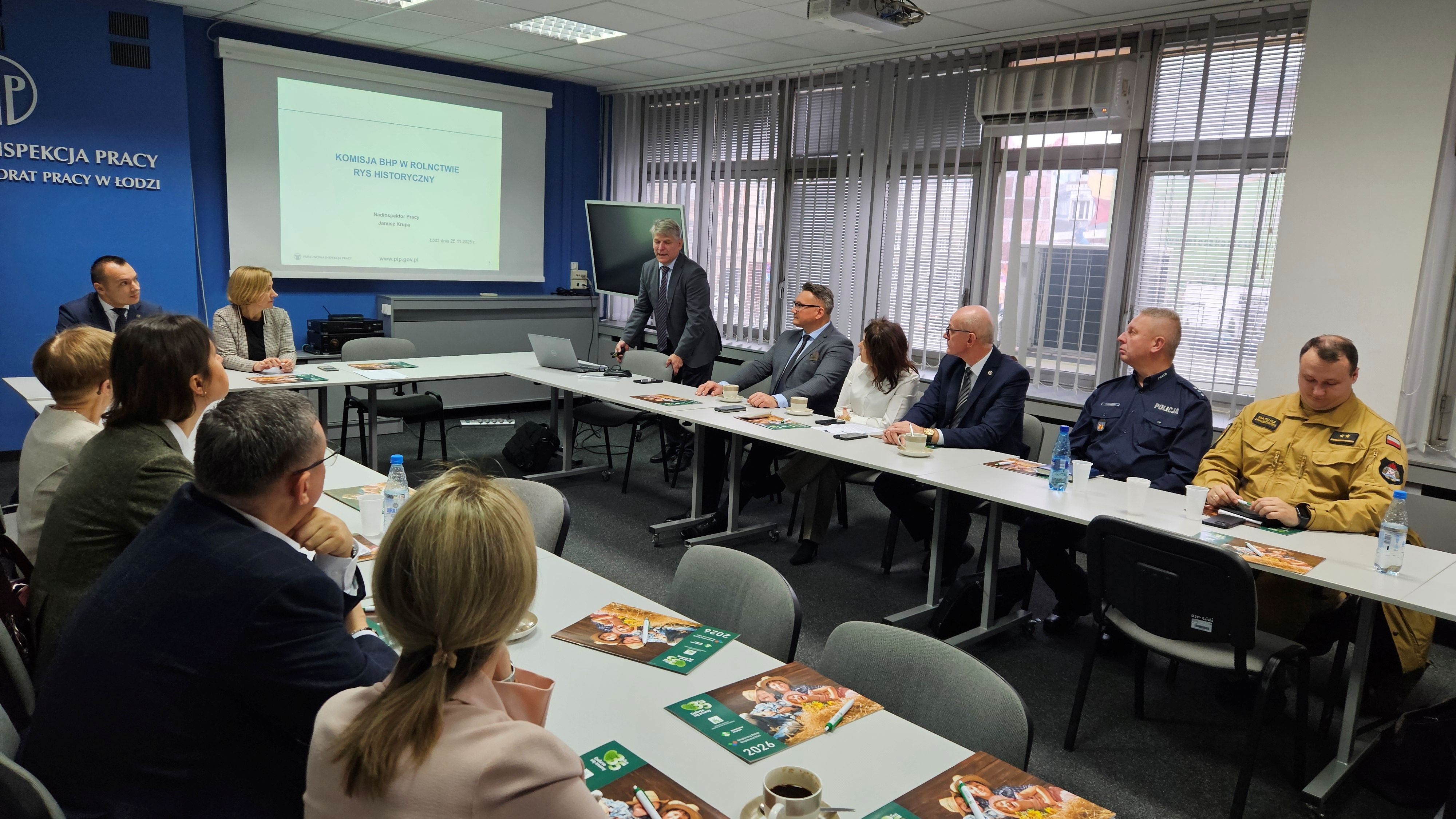 25 listopada 2025 r. w siedzibie Okręgowego Inspektoratu Pracy w Łodzi, odbyło się posiedzenie Wojewódzkiej Komisji ds. bezpieczeństwa i higieny pracy w rolnictwie przy Okręgowym Inspektorze Pracy w Łodzi. Zebranych powitała Agnieszka Woźniak, Okręgowy Inspektor Pracy w Łodzi, dziękując przedstawicielom instytucji działających na rzecz rolnictwa za udział w spotkaniu.