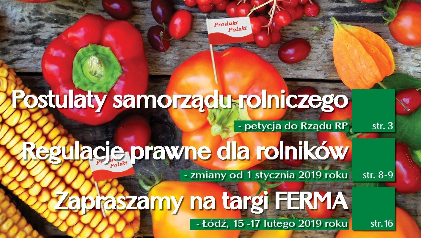 Szanowni Państwo, w związku z trudną sytuacją na rynkach rolnych, szczególnie na rynku trzody chlewnej, izby rolnicze skierowały do Rządu Rzeczypospolitej Polskiej oraz przekazały Ministrowi Rolnictwa i Rozwoju Wsi postulaty wojewódzkich izb rolniczych, którą publikujemy w naszym miesięczniku. Petycja miała być ogłoszona podczas zgromadzenia wojewódzkich izb rolniczych pod hasłem „W obronie interesów rolników”, które było zaplanowane na dzień 10 stycznia 2019 roku w Warszawie. W wyniku podjęcia rozmów z samorządem rolniczym przez Rząd RP oraz Ministra Rolnictwa i Rozwoju Wsi w dniu 8 stycznia, zgromadzenie zostało odwołane. Wiktor Szmulewicz – Prezes Krajowej Rady Izb Rolniczych w imieniu Wojewódzkich Izb Rolniczych oraz Jan Krzysztof Ardanowski – Minister Rolnictwa i Rozwoju Wsi zaapelowali do wszystkich organizacji rolniczych o zorganizowanie wspólnej reprezentacji organizacji i związków rolniczych oraz wspólne rozwiązywanie problemów w zespołach roboczych w ramach okrągłego stołu rolniczego. W zespołach roboczych powinni się znaleźć przedstawiciele nie tylko producentów rolnych i przetwórców, ale także przedstawiciele konsumentów, a wszystko to po to, by doprowadzić do zintegrowania wszystkich ogniw „od pola do stołu” i wypracowania niezbędnych zmian w polskim rolnictwie.