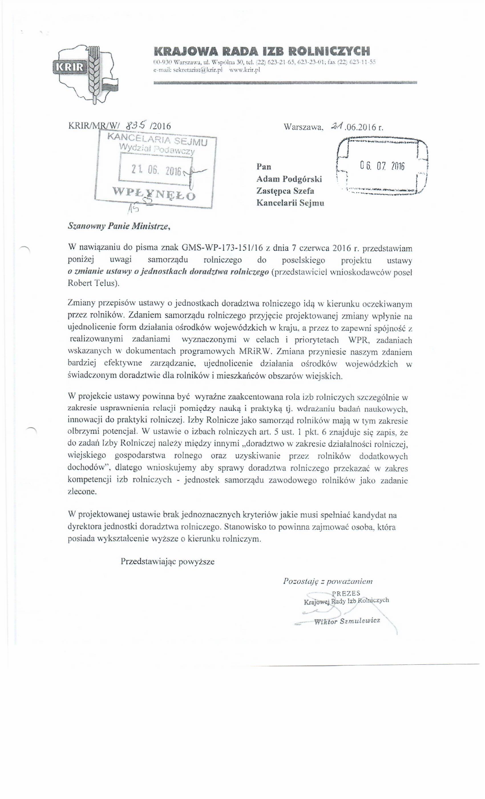 Stanowisko Izby Rolniczej Województwa Łodzkiego jest zbieżne ze stanowiskiem Krajowej Rady Izb Rolniczych