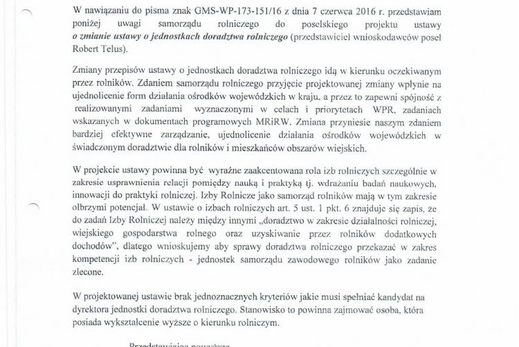 Uwagi samorządu rolniczego do zmian w jednostkach doradztwa rolniczego (projekt ustawy)