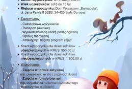 Biuro Powiatowe Izby Rolniczej Województwa Łódzkiego w Radomsku informuje o organizacji zimowiska dla dzieci rolników „Zimowisko 2026”, dofinansowanego ze środków Funduszu Składkowego Ubezpieczenia Społecznego Rolników. Wyjazd odbędzie się w dniach 8–14 lutego 2026 r., a uczestnikami mogą być dzieci w wieku od 6 do 16 lat.